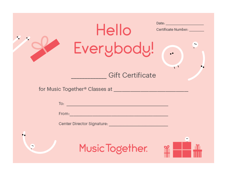 Gift Certificates are available for class tuition at Music Together with Shannon! Perfect for any celebration: baby showers, birthdays, Mother’s and Father’s Day, Christmas, Hanukkah, etc.